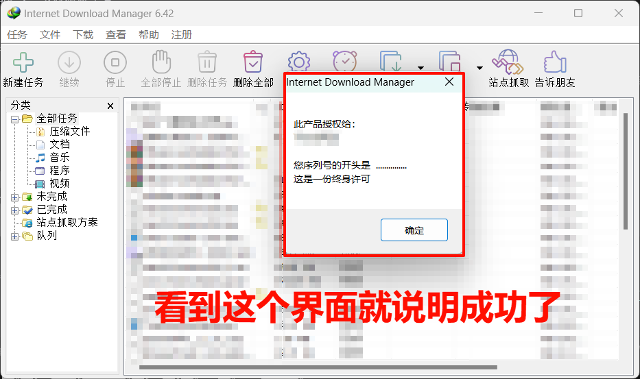 打开 IDM,在【注册】-【本软件已注册】中可查看授权信息(显示为终身许可)。