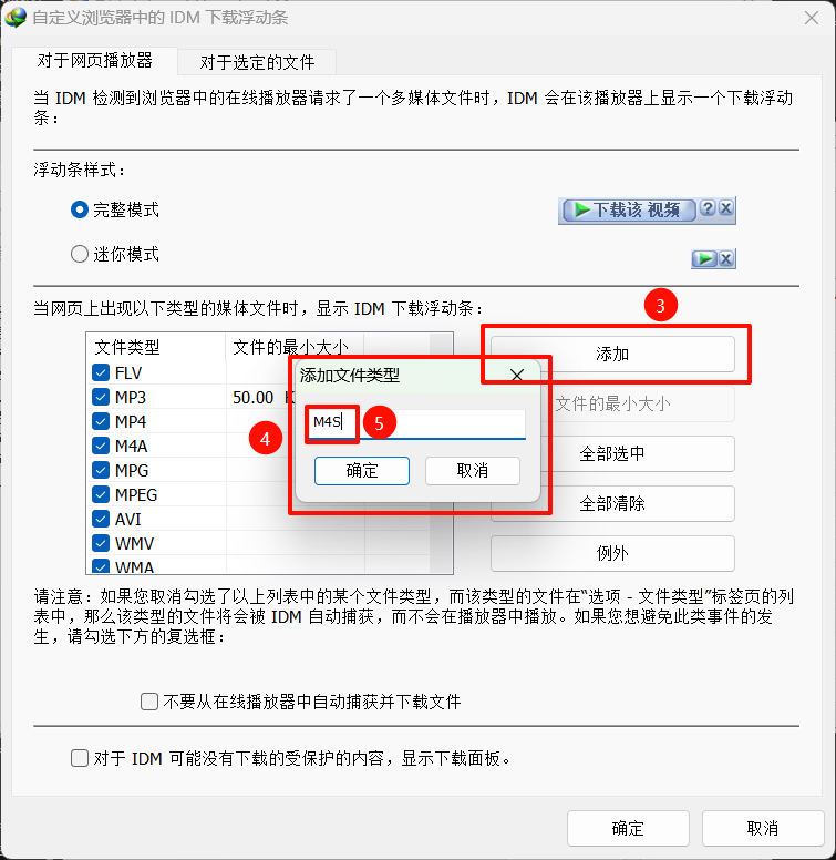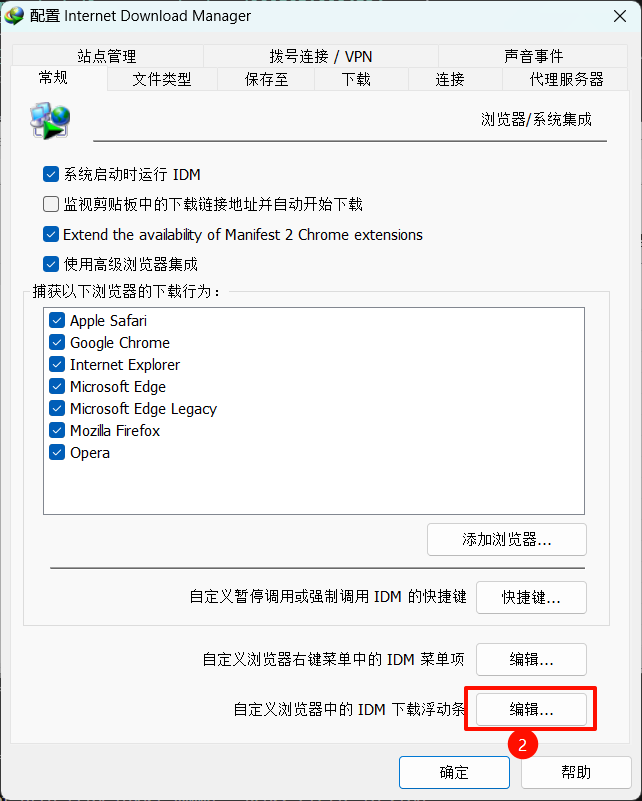 - 点击最下面【自定义IDM下载浮动条】的【选项】