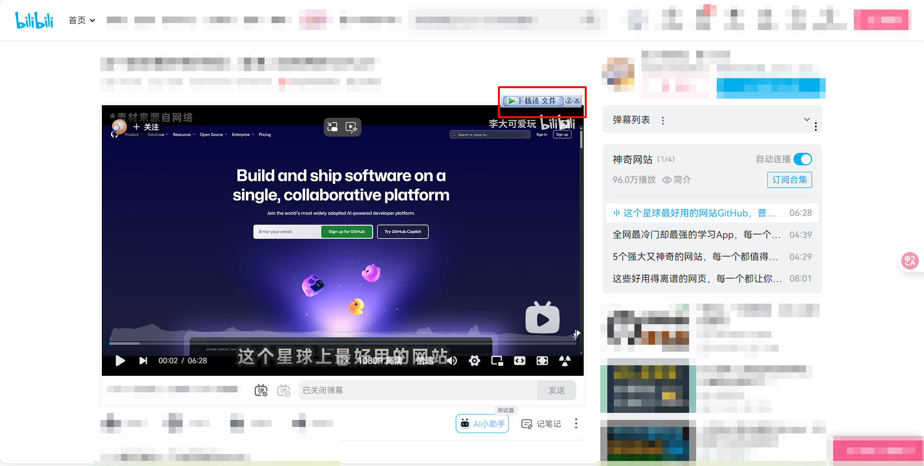 - 再打开哔哩哔哩就会看到右上角有下载视频的浮动条
